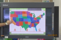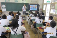 2学期から原町二小のALTの先生が変わり、ジェイミー先生と共にアクティブな外国語学習を進めています。最初の時間には、ジェイミー先生の出身地、アメリカのフィラデルフィアなどの紹介する授業でした。