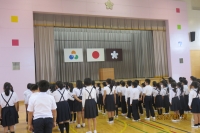 2学期、5名が転出し、2名転入の175名でスタートしました。6名の代表が、夏休みの思い出や2学期のめあてを発表しました。めあてを常に意識し、継続してがんばれるといいですね。式では、勉強の秋、芸術の秋に向かって力を発揮してほしいこと、知らない人の声かけに注意することなどが話されました。