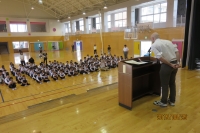 式後、新しいALTのジェイミー先生の紹介がありました。新しい先生と一緒に英語や外国の文化などについて学習できるのが楽しみです。さらに、夏休み中活躍した合奏部とミニバス男子の表彰がありました。2学期もいろいろな分野で自分の力を伸ばしていってほしいと思います。