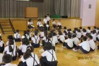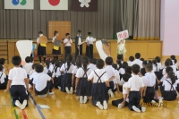 式の後、生徒指導の先生の「いのち」の話と保健委員会児童から「夏休み中の歯磨き」について発表がありました。保健委員会発表は、とても分かりやすい劇仕立てになっていて、低学年児童は思わず立ち上がりました。健康を意識した規則正しい生活を期待したいものです。