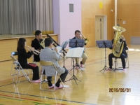 金管五重奏の素晴らしい演奏を聴く機会に恵まれました。トランペット2人、ホルン、トロンボーン、チューバのそれぞれの楽器の音を披露してもらい、カーペンターズの青春の輝きやディズニーソングメドレーを演奏していただきました。