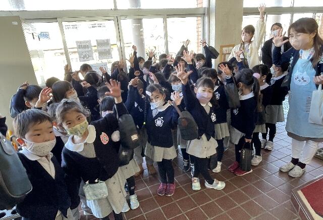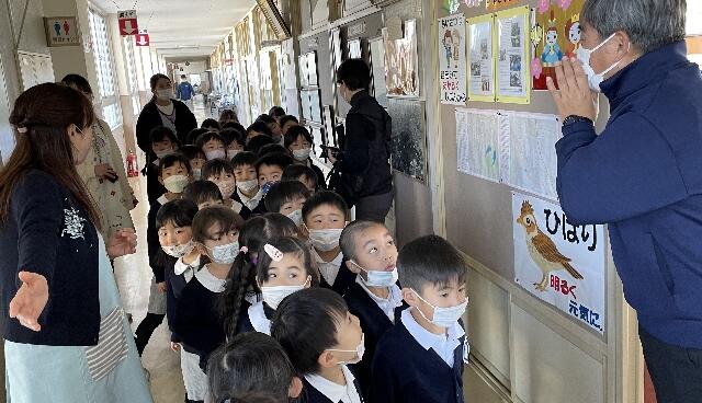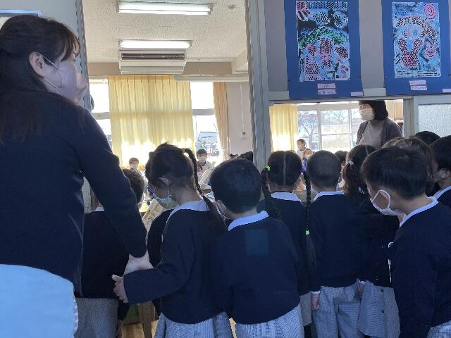 2023年2月28日 15時00分今日はさゆり幼稚園の皆さんがいらっしゃって、小学校見学をしてもらいました。30名以上の来訪でしたが、皆さん行儀良く静かに見学していて、驚きました。