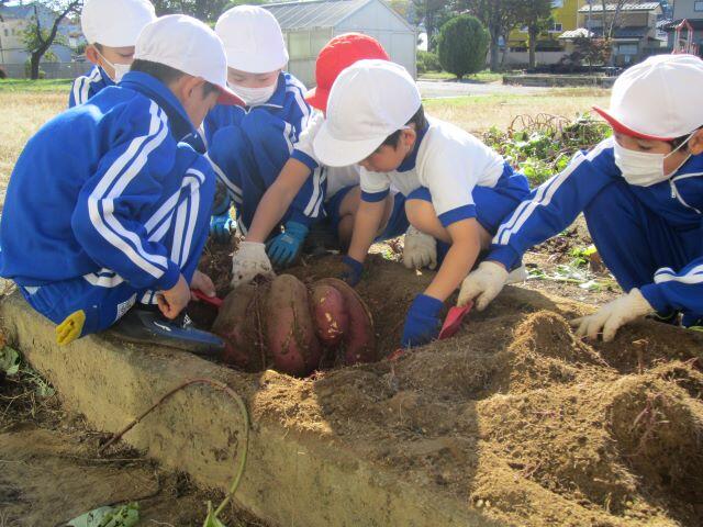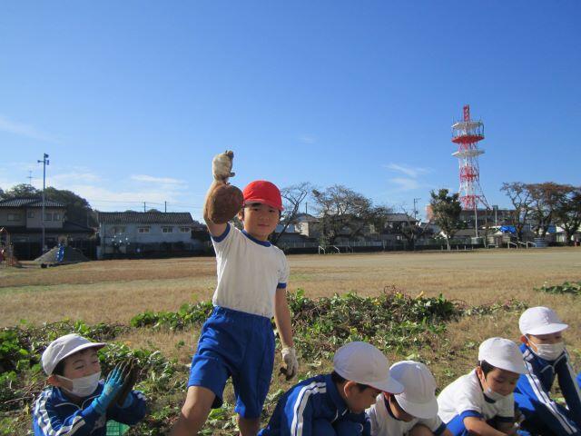 ついにゲットできました!「さつまいも、とったぞ~!」友達も大喜びです。