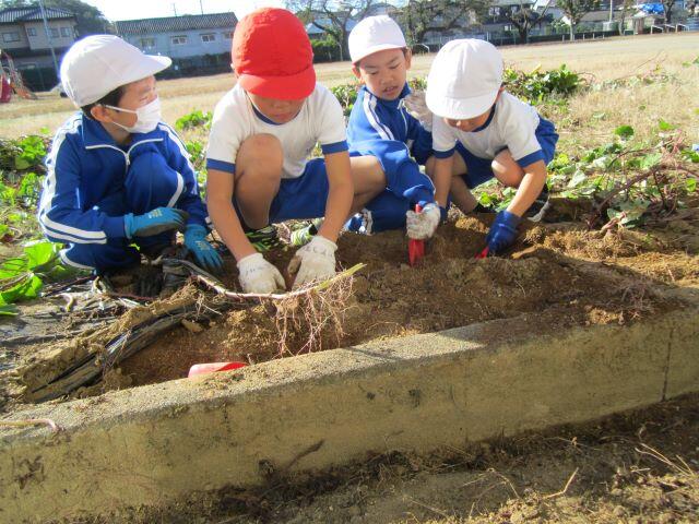 さつまいもを育てる体験を通して、「食べ物への感謝・命のすばらしさ・協力する楽しさ」等、たくさんのことを学んでいる子どもたちです。