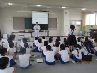 4日(火)、3年生と4年生を対象とした放射線教育の出前授業を実施しました。放射性物質、放射線、放射能を野球のピッチャーが投げるボールに見立て、子どもたちに分かりやすく教えていただきました。ピッチャーが疲れてくれば、ボールの勢いも落ちてきます。半減期が理解できました。