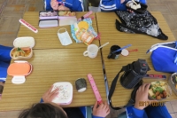 6年生とおしゃべりをしながらのお弁当は、クラスの人だけで食べているお弁当とは違った味がしたかも。あと1回お弁当の日があります。
