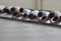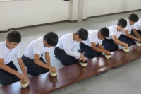 2017年7月5日 14時04分 5日(水)、6年社会科の室町文化学習で「茶道」を学習しました。お茶が日本に伝えられた昔からどのように広まったいったかの歴史を学習しながら、立礼座礼などの礼儀作法を学び、お茶を実際に立て味わいました。しばしの正座に足がしびれてしまった人も・・・。