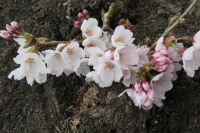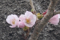 ここ2日間の暖かさがあり、今朝、校庭の桜の木を見ると、花開いていました。校庭南側で2本、校庭西で1本。合計3本の桜の木で開花が見られました。今日の水分を得て、来週には、色鮮やかに色づき、咲き誇るものと思います。