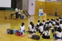 その後、南相馬警察署の方や少年補導員の方々から見知らぬ方から声かけを受けた際のシュミレーションをしました。低学年の子どもたちもよくわかっていたようです。防犯教室後、自然災害などを想定した「引き取り訓練」を行いました。児童名と迎えに来た人の確認を2回しっかりして引き渡し、校長・教頭が見送りました。