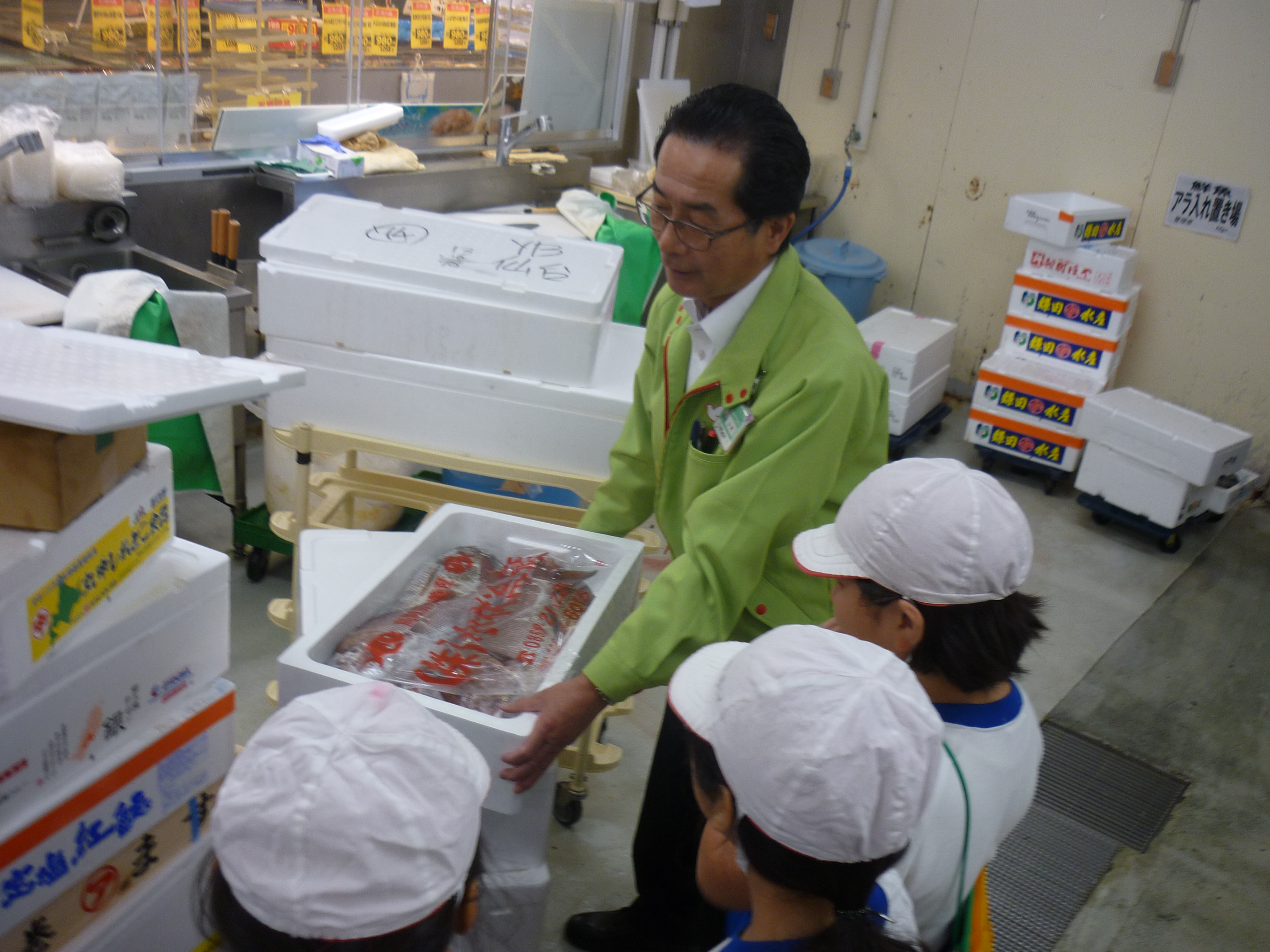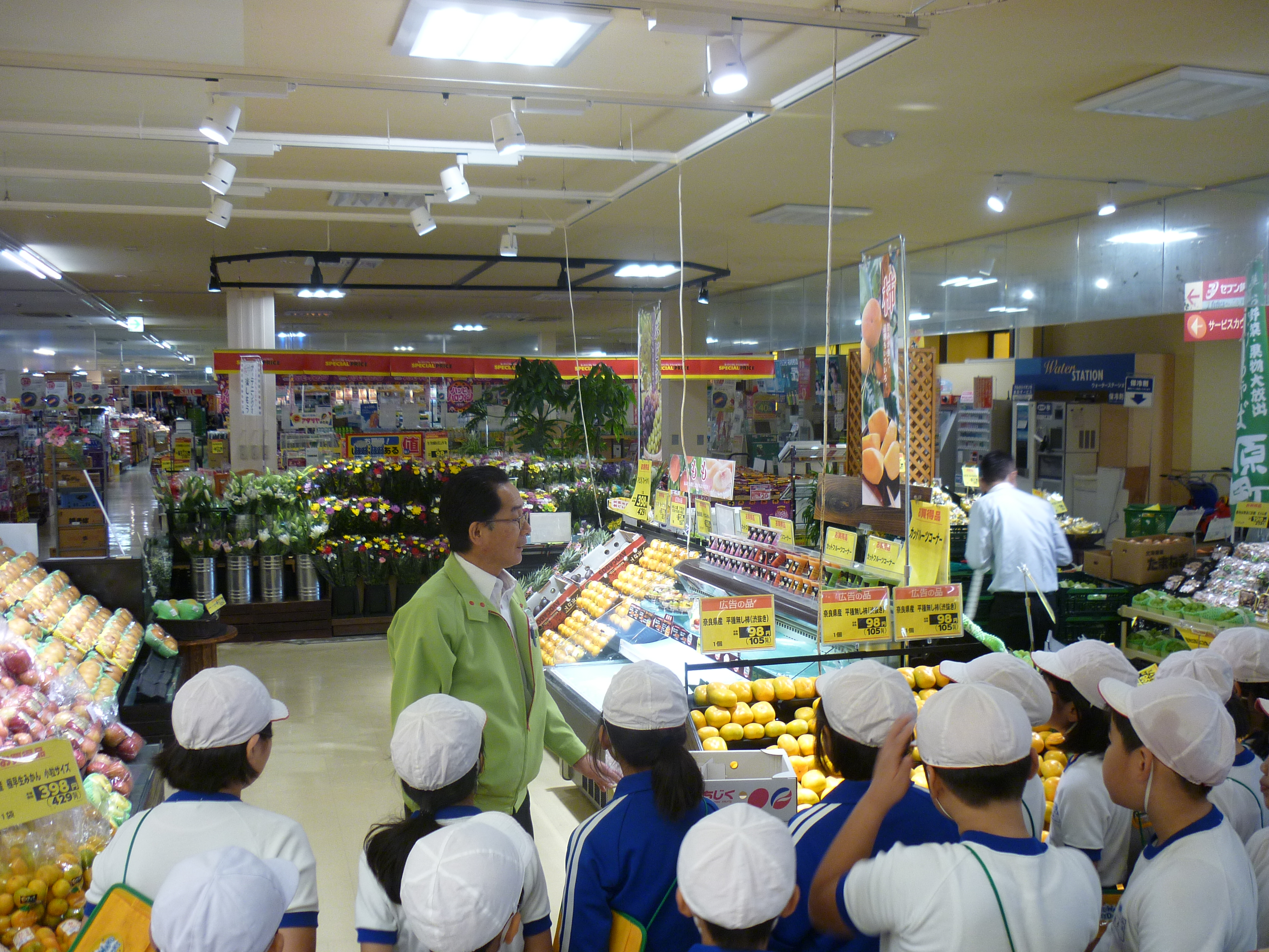 3年生が、社会科の見学で、ヨークベニマルを見学してきました。店長さんや店員さんからスーパーについての説明をしていただき、売り場だけではなく、調理するところや倉庫、冷蔵庫なども見学させていただきました。日頃、買い物などで来ているスーパーですが、働いている人の姿や売り場の裏を見ることができ、とても勉強になったと思います。これからの買い物が楽しみになりましたね。ヨークベニマルの店長さんはじめ、従業員の方々に感謝申し上げます。