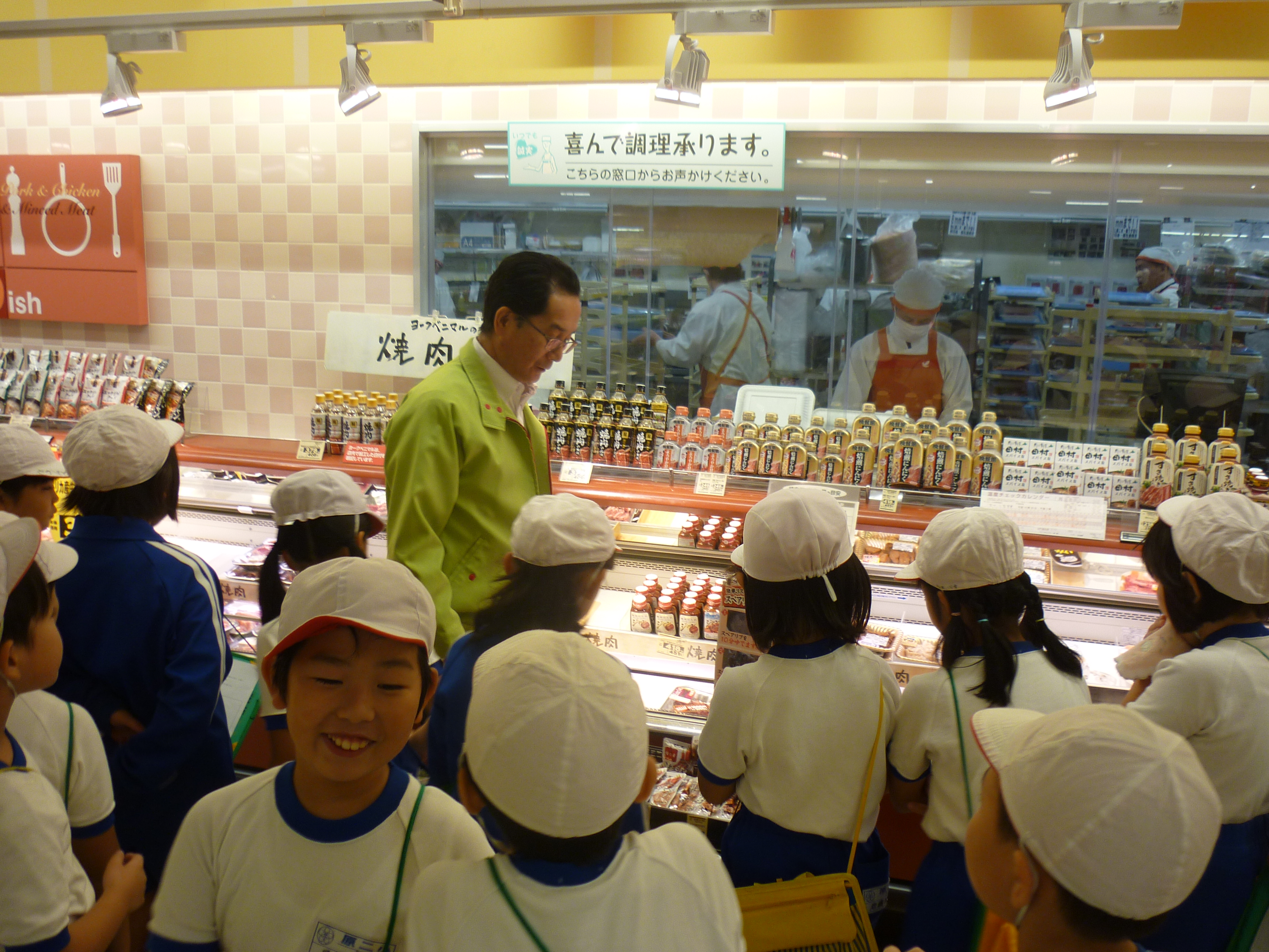 2018年9月28日 10時32分3年生が、社会科の見学で、ヨークベニマルを見学してきました。店長さんや店員さんからスーパーについての説明をしていただき、売り場だけではなく、調理するところや倉庫、冷蔵庫なども見学させていただきました。日頃、買い物などで来ているスーパーですが、働いている人の姿や売り場の裏を見ることができ、とても勉強になったと思います。これからの買い物が楽しみになりましたね。ヨークベニマルの店長さんはじめ、従業員の方々に感謝申し上げます。