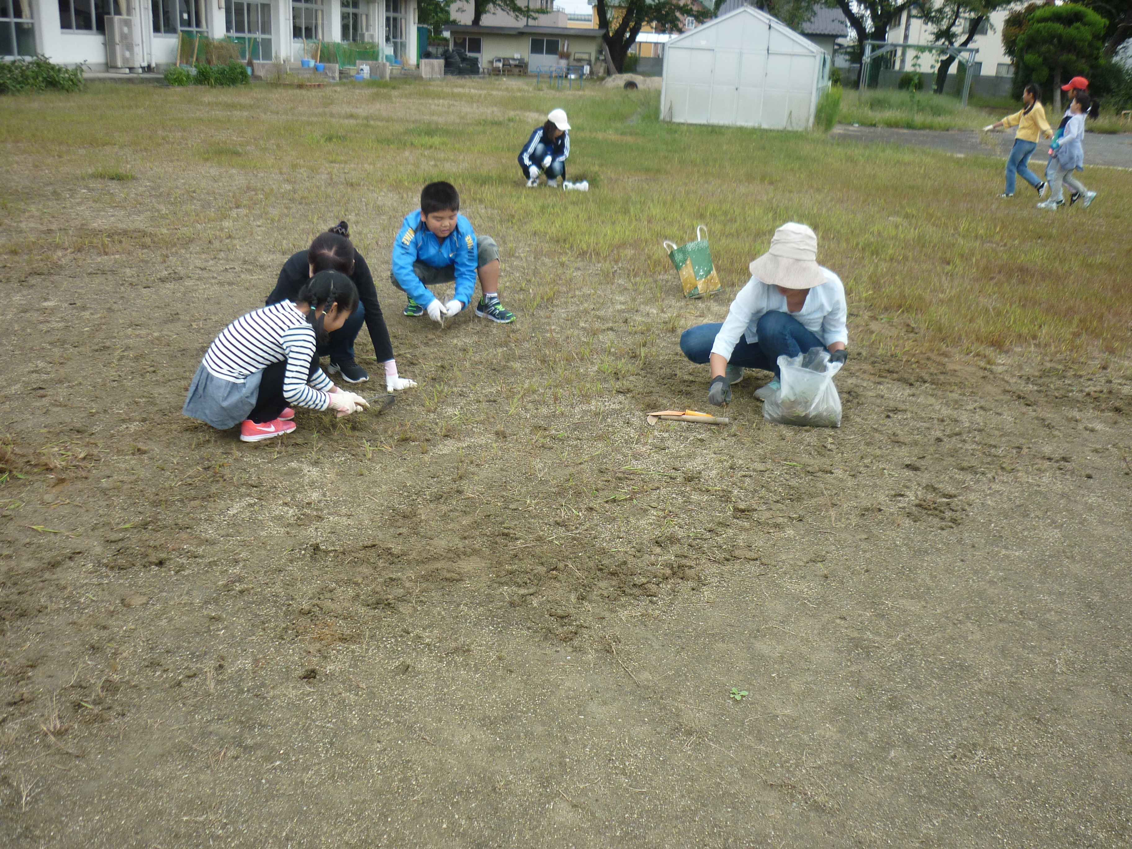 9月29日(土)に親子ボランティア活動が行われ、校庭の除草を親子で行いました。今年は、例年にないほど、草が多く生えていてたいへんでしたが、PTAの協力でたいぶきれいになりました。それでもまだ、残っている草が多いので、児童と休み時間や昼休みを利用しながら、除草していきたいと思います。ご協力いただきました保護者の方々に感謝申し上げます。