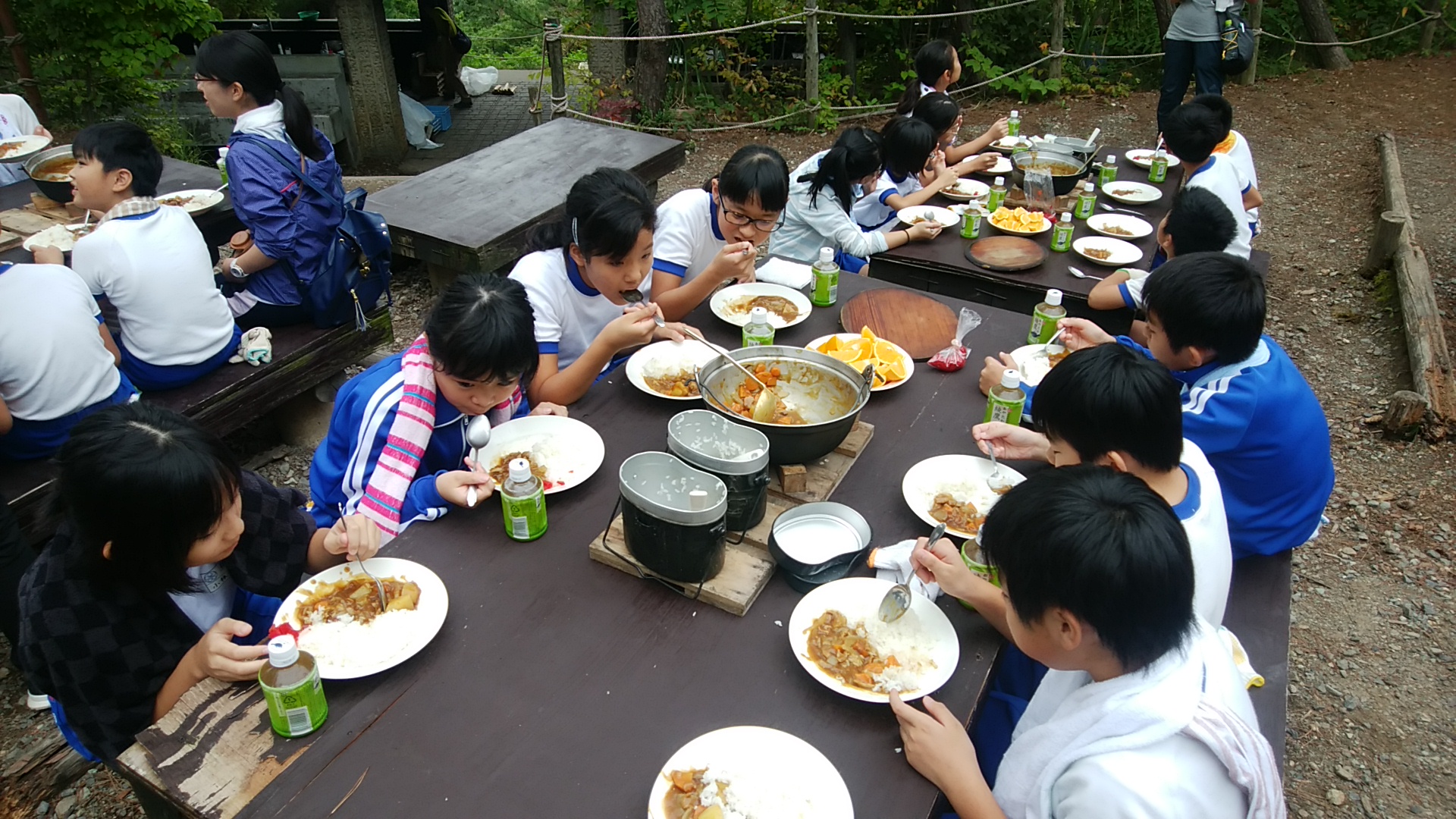 昼食は野外炊飯。カレーはおいしくできたでしょうか。