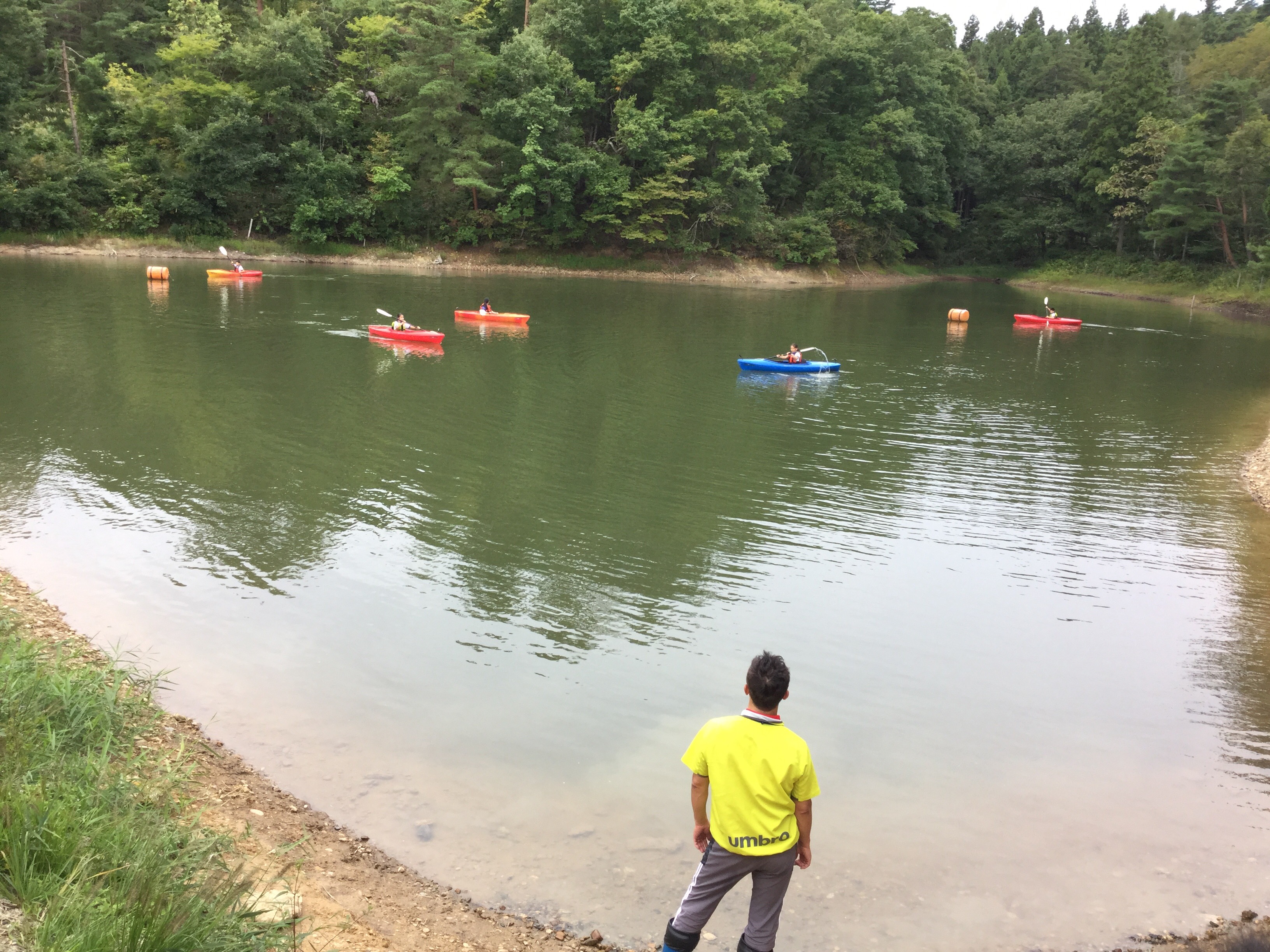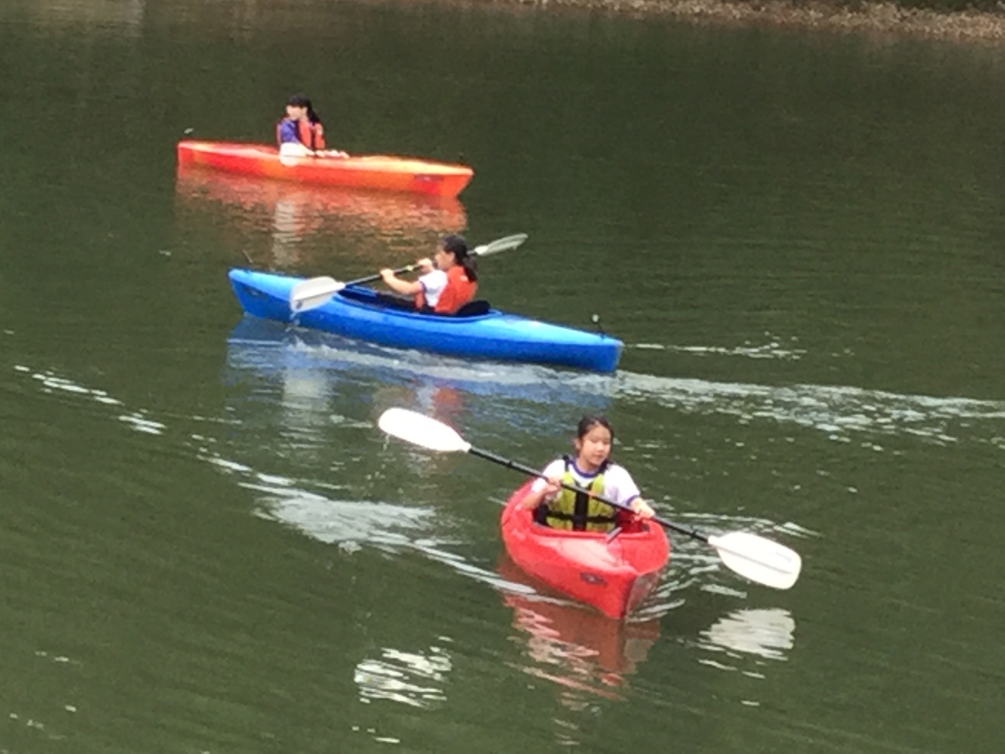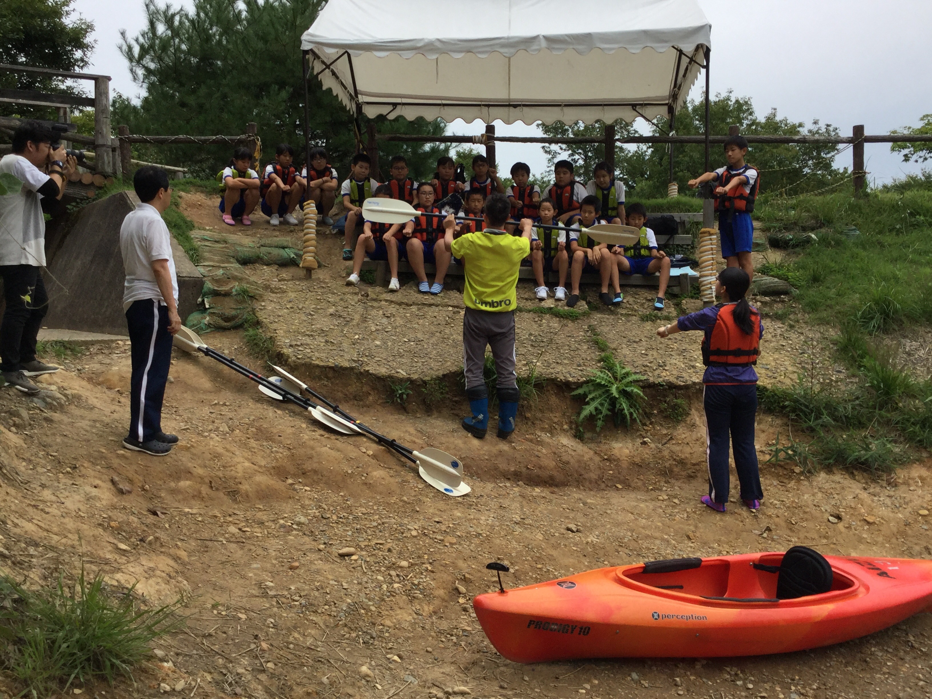 おなかがふくれたらカヌー体験。ほぼみんな初めてなのに、活動の終わり頃にはすいすい進むようになりました。