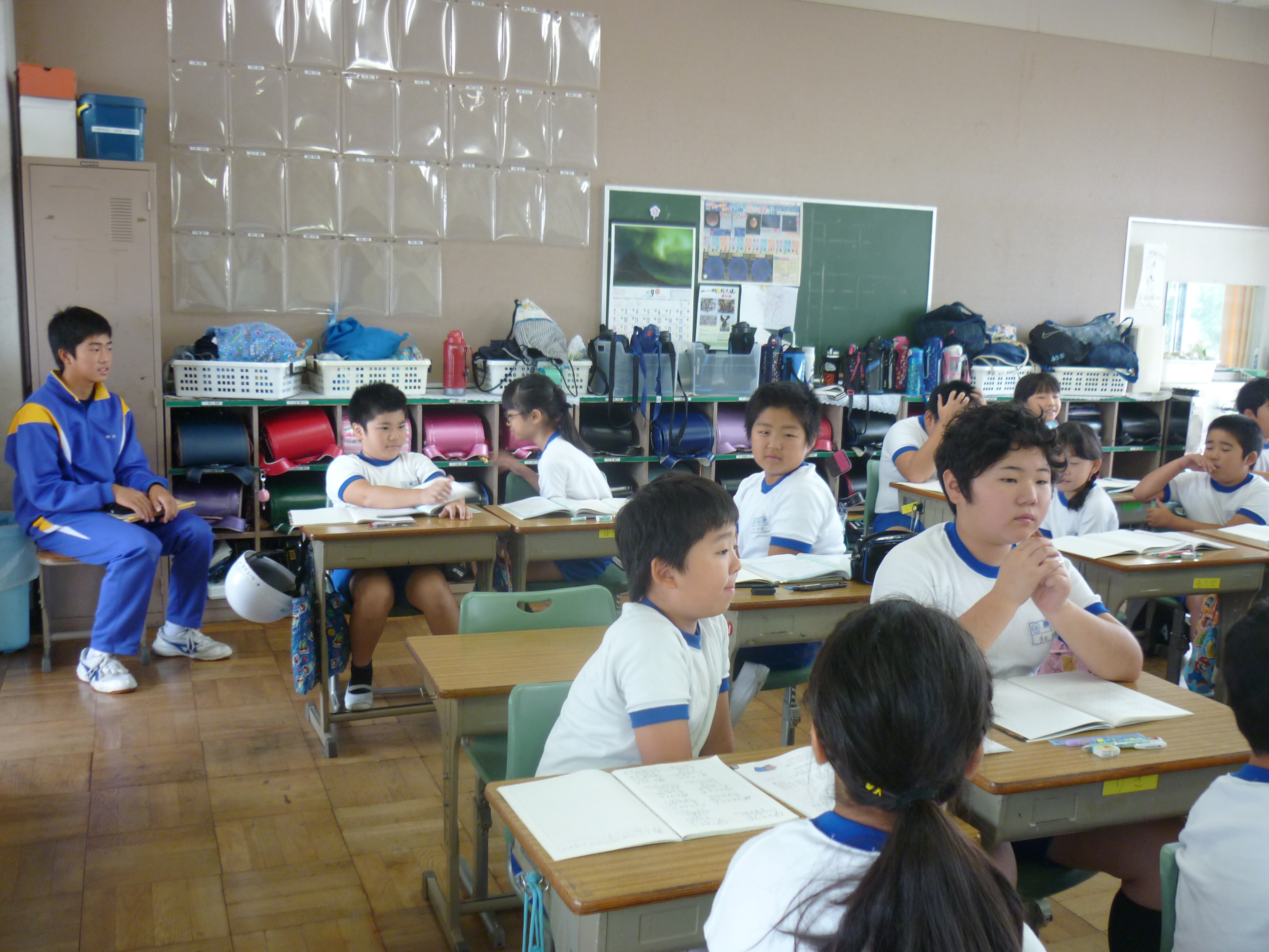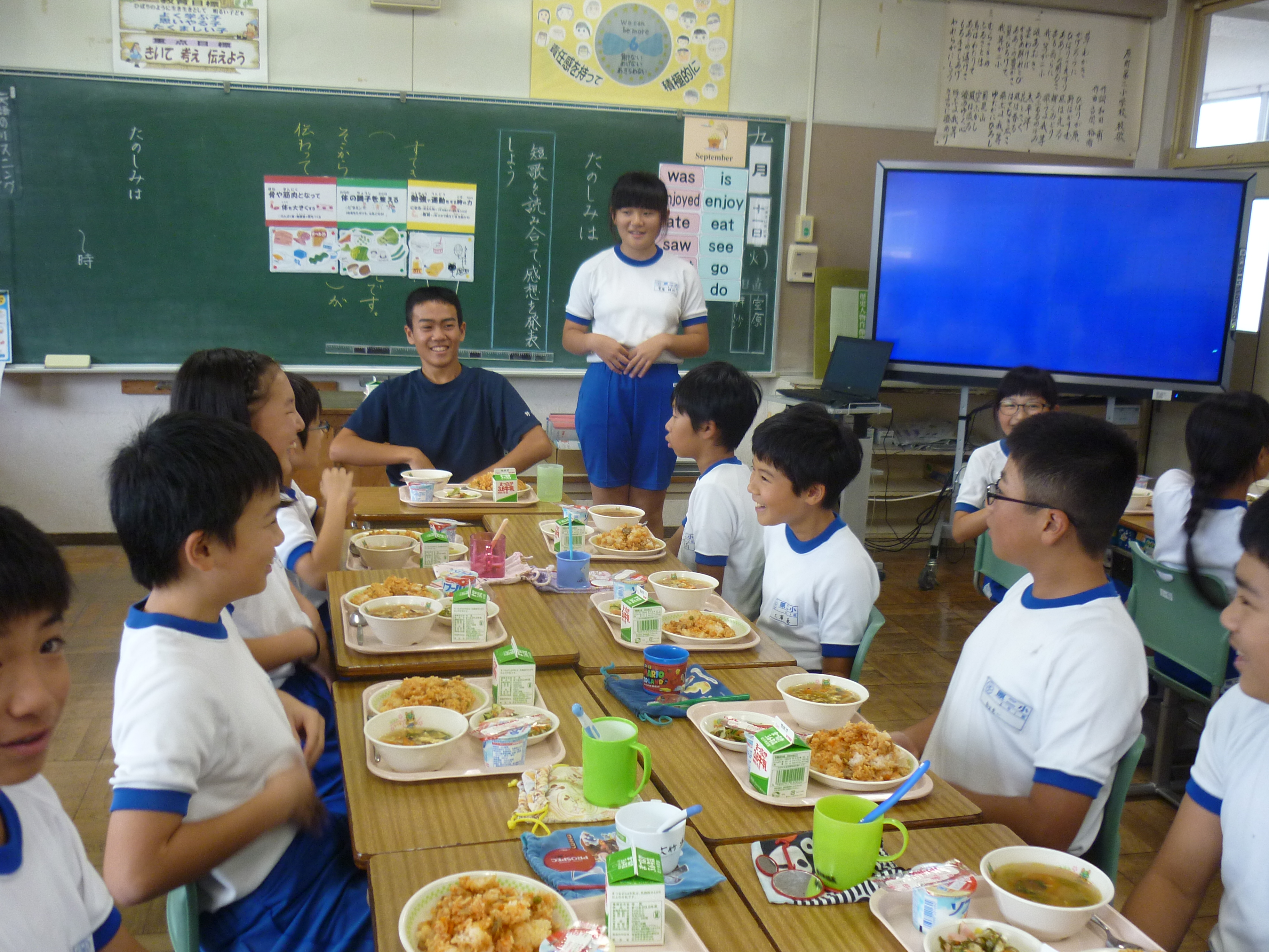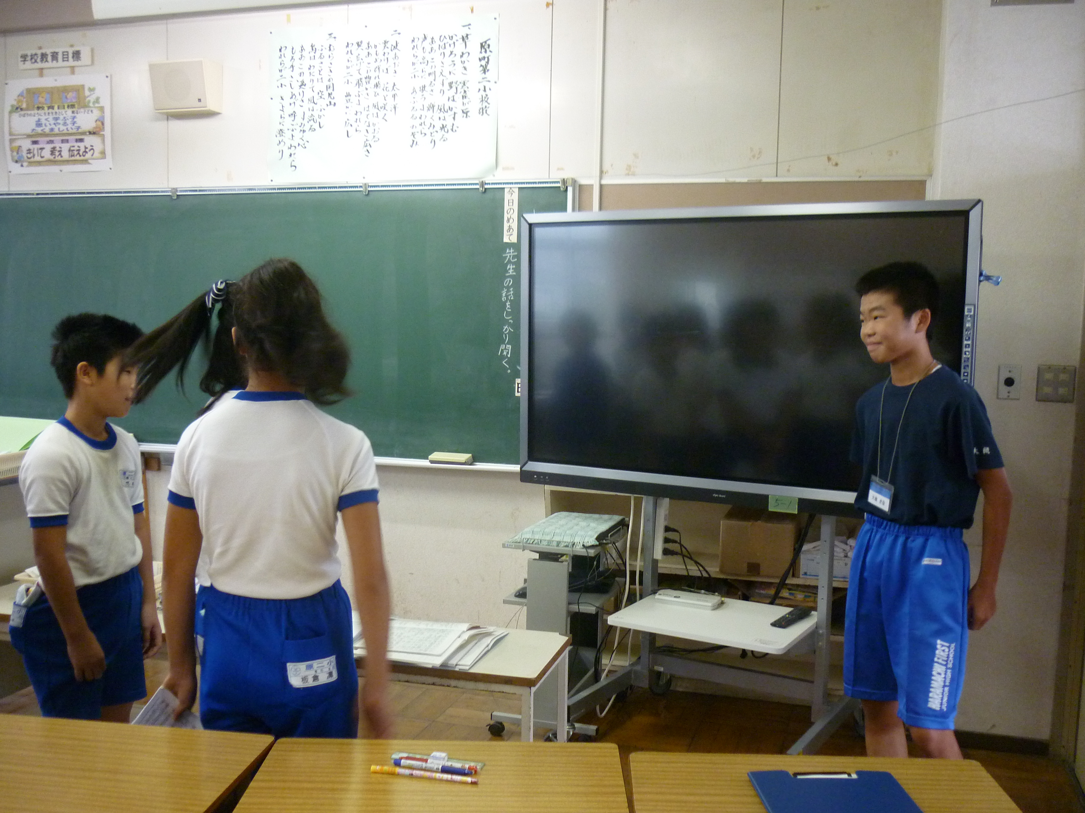今日から、原町第一中学校2年の大槻虎聖さん、柏原政和さん、野村和輝さん3名が、本校に職場体験に来ました。5年生と6年生のクラスに入り、先生方の指導をしているところを学んだり、お手伝いをしたりと先生の仕事に多く携わっていました。5・6年生の児童も先輩の中学生と一緒に勉強したり給食を食べたりすることができ、とても喜んでいました。この経験が、進路を決める時期に役立ててもらえたら嬉しく思います。がんばれ!!中学生!!