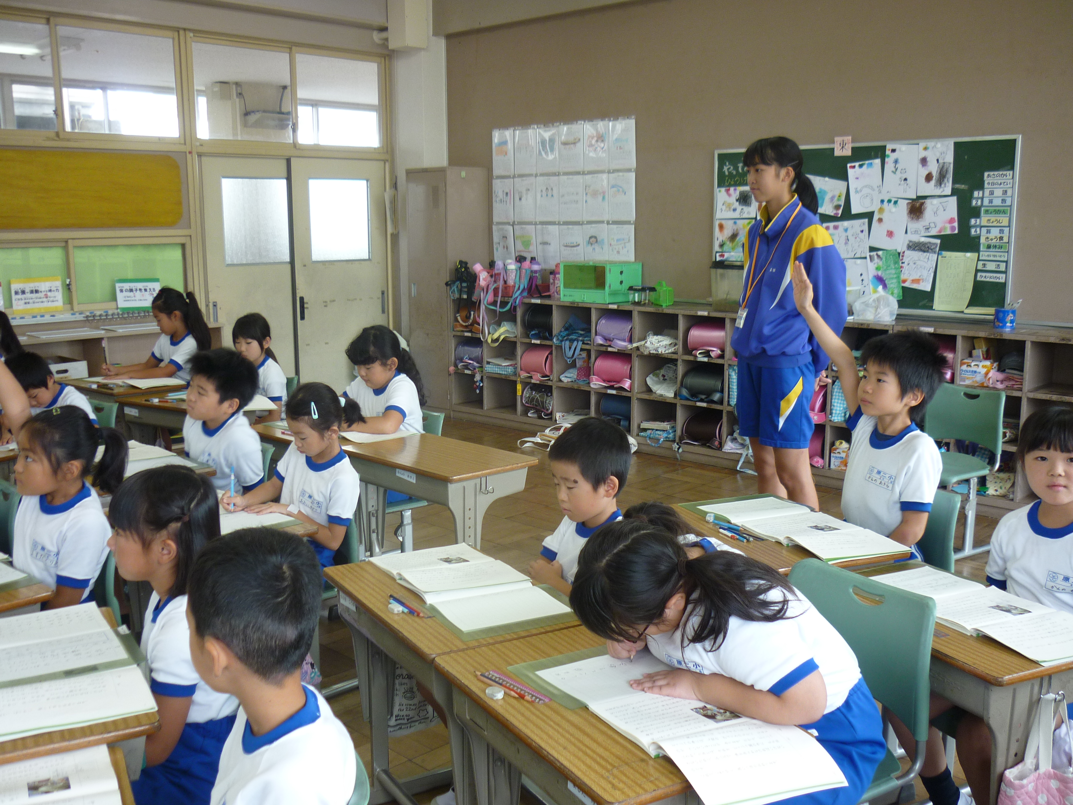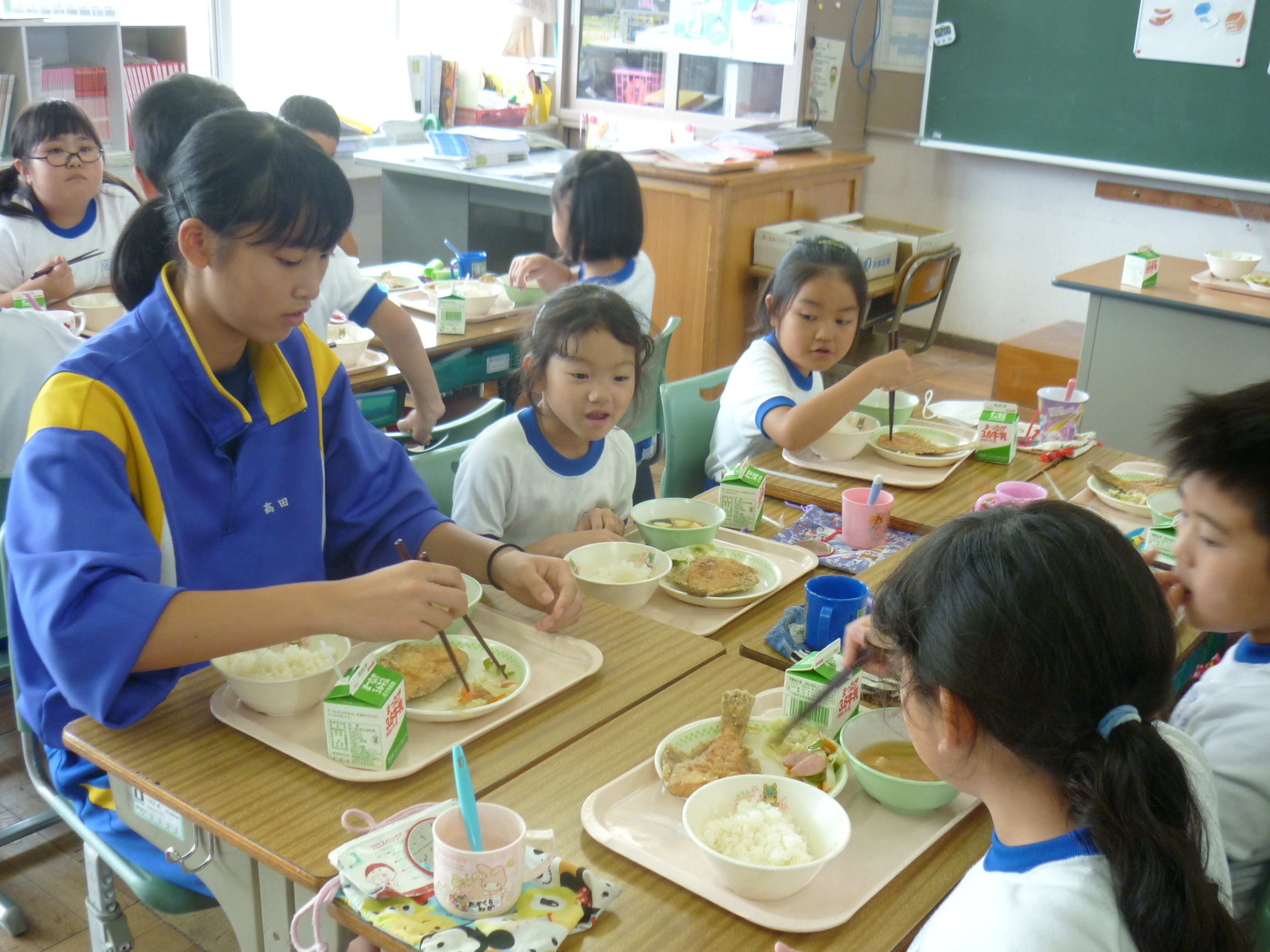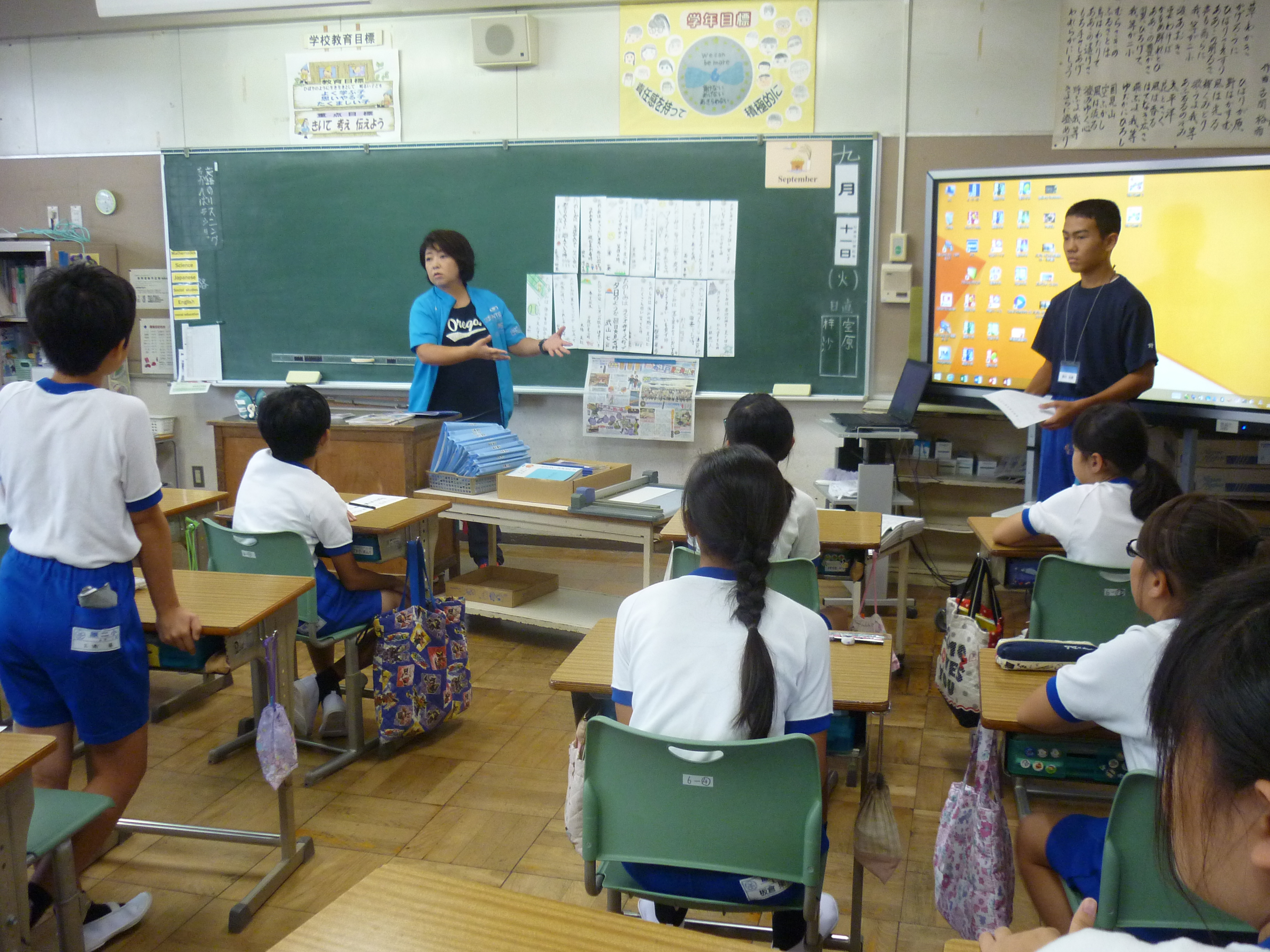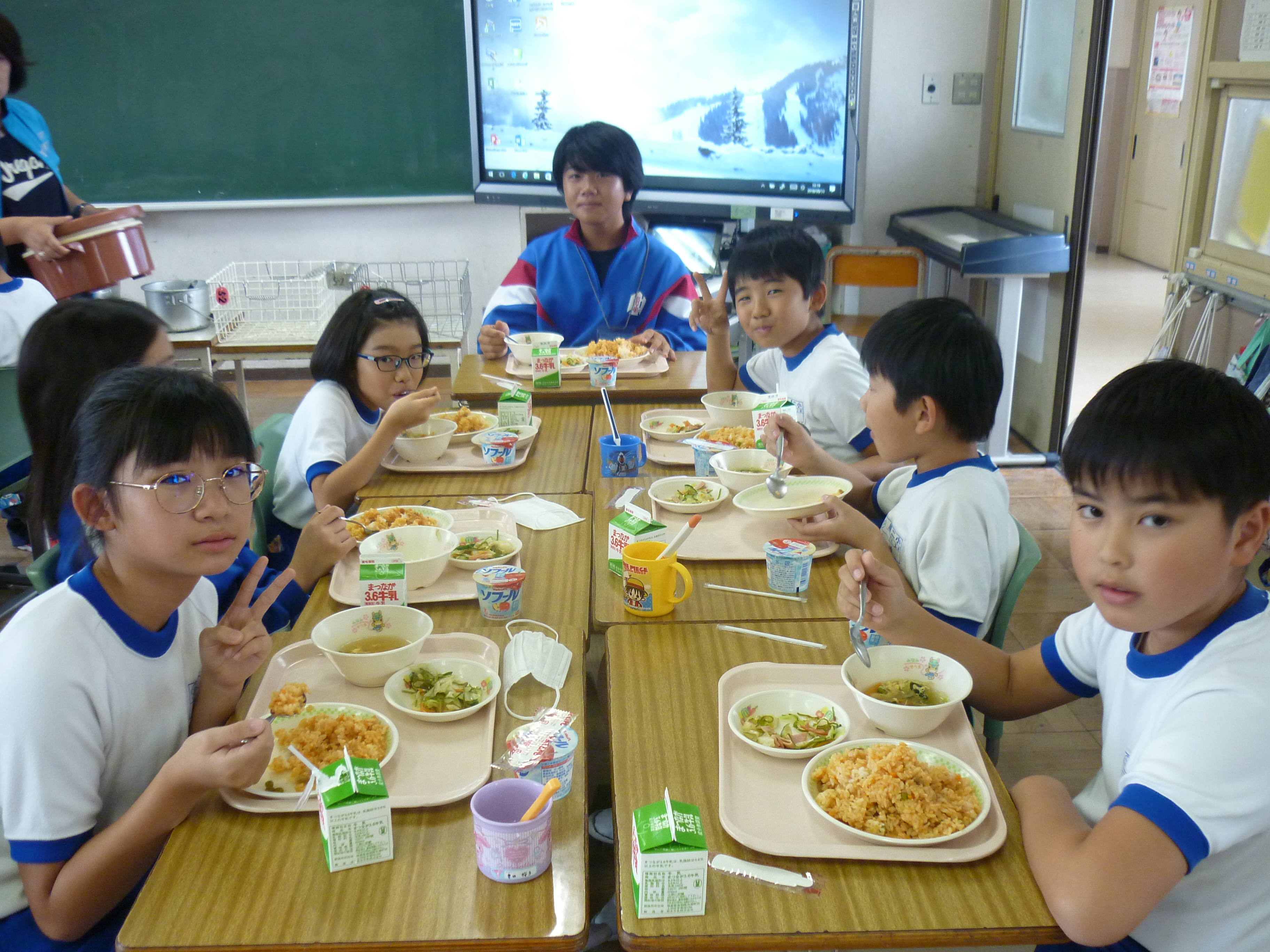 今日から、原町第一中学校2年の大槻虎聖さん、柏原政和さん、野村和輝さん3名が、本校に職場体験に来ました。5年生と6年生のクラスに入り、先生方の指導をしているところを学んだり、お手伝いをしたりと先生の仕事に多く携わっていました。5・6年生の児童も先輩の中学生と一緒に勉強したり給食を食べたりすることができ、とても喜んでいました。この経験が、進路を決める時期に役立ててもらえたら嬉しく思います。がんばれ!!中学生!!