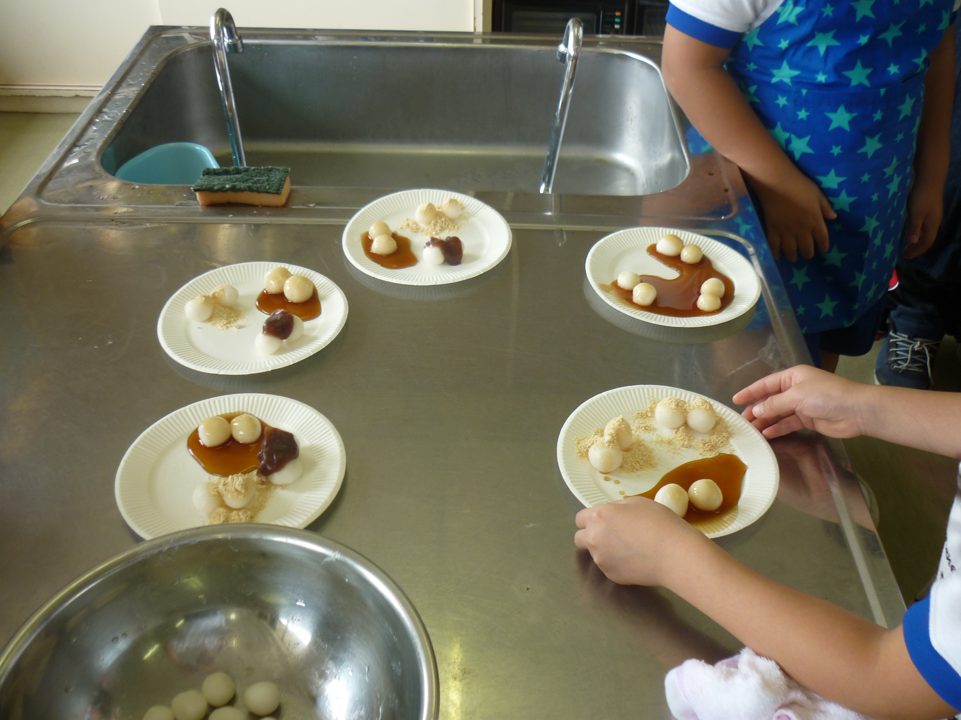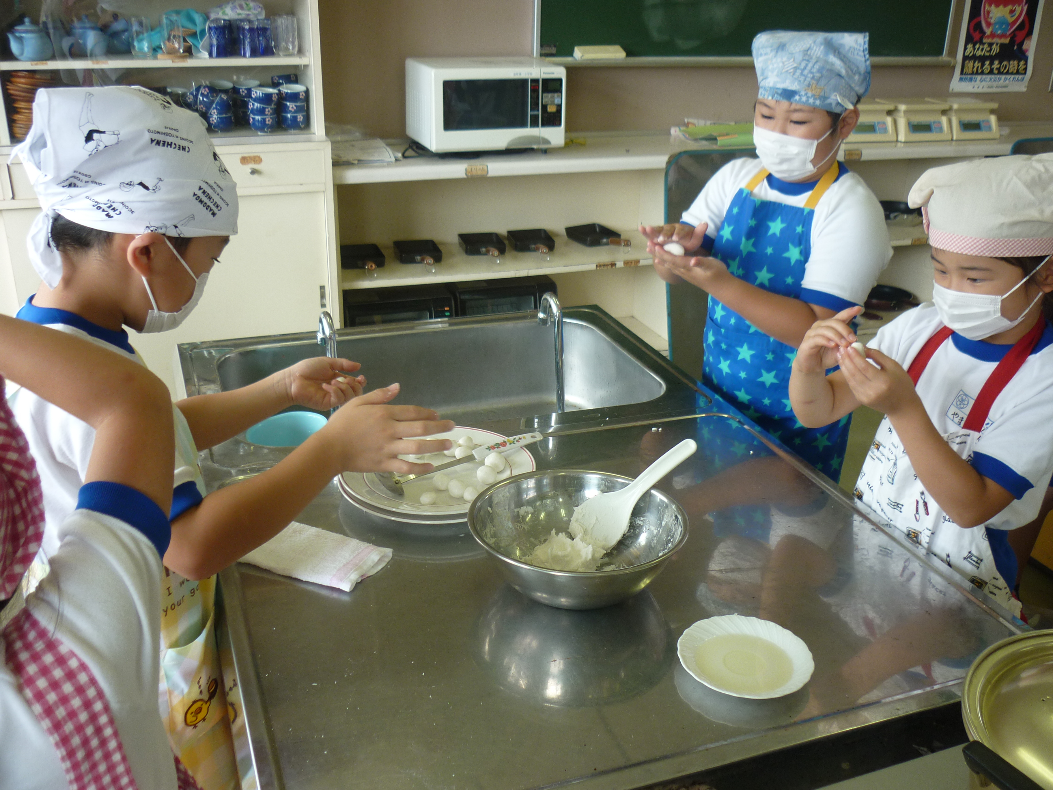 JAの佐藤さんに教えていただきながら、1年生がおだんご作りに挑戦しました。上手く丸めることができるかと心配していましたが、1年生とは思えないほど上手に優しく丸めているのにはびっくりしました。あんことみたらし、きなこのだんごを全員で試食しました。とっても美味しかったです。ぜひ、ご家庭でも一緒に作ってみてください。