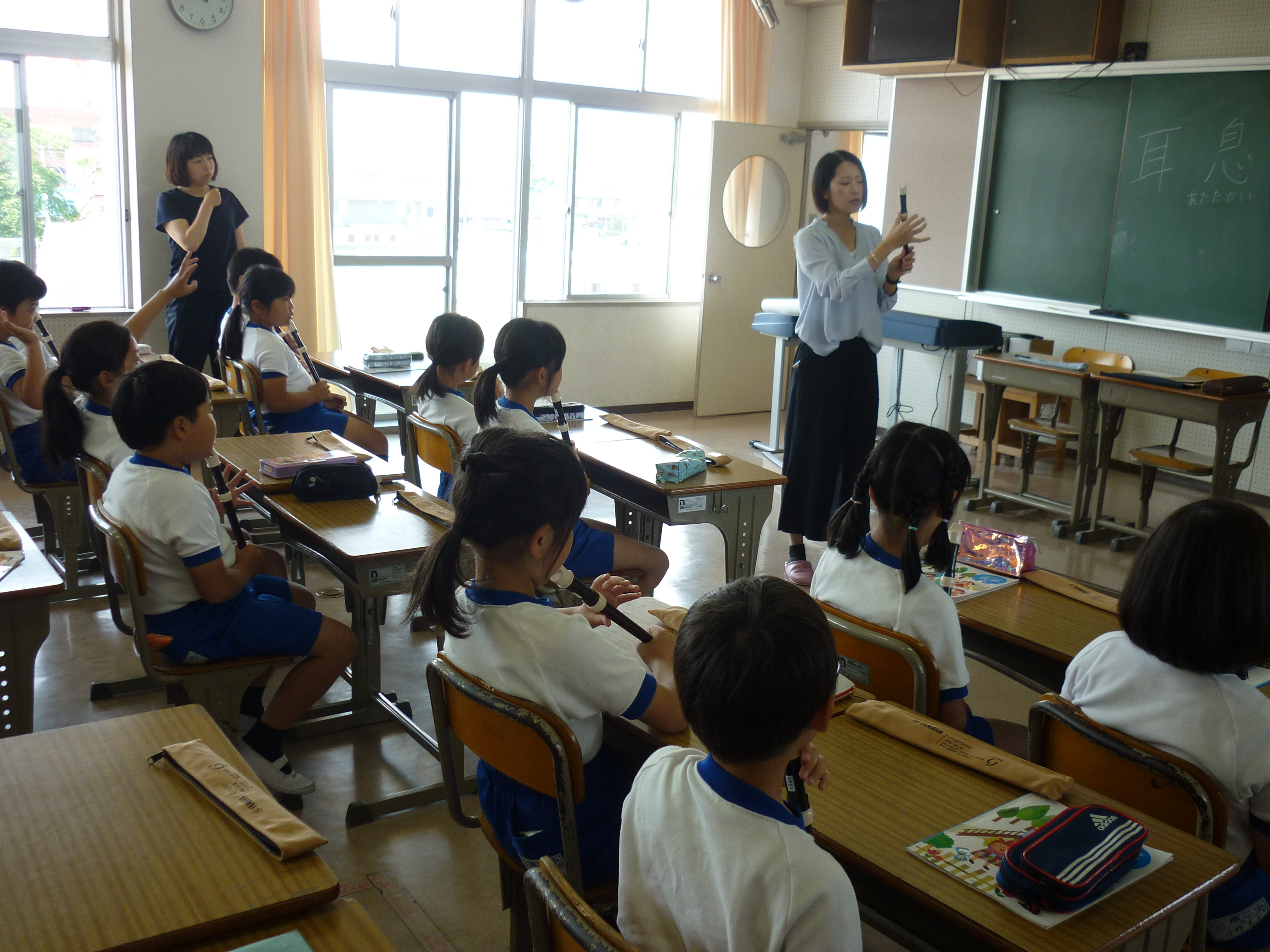 2018年6月8日 10時02分先日、音楽の授業で、講師の方を招いての音楽教室を実施しました。実施したのは、3年生の「リコーダー」1年生の「鍵盤ハーモニカ」で、上手に演奏する方法を教えていただきました。児童は、真剣に取り組み、きれいな音ができるように一生懸命がんばっていました。これから練習して、素敵な音色がでるようになるといいdすね。