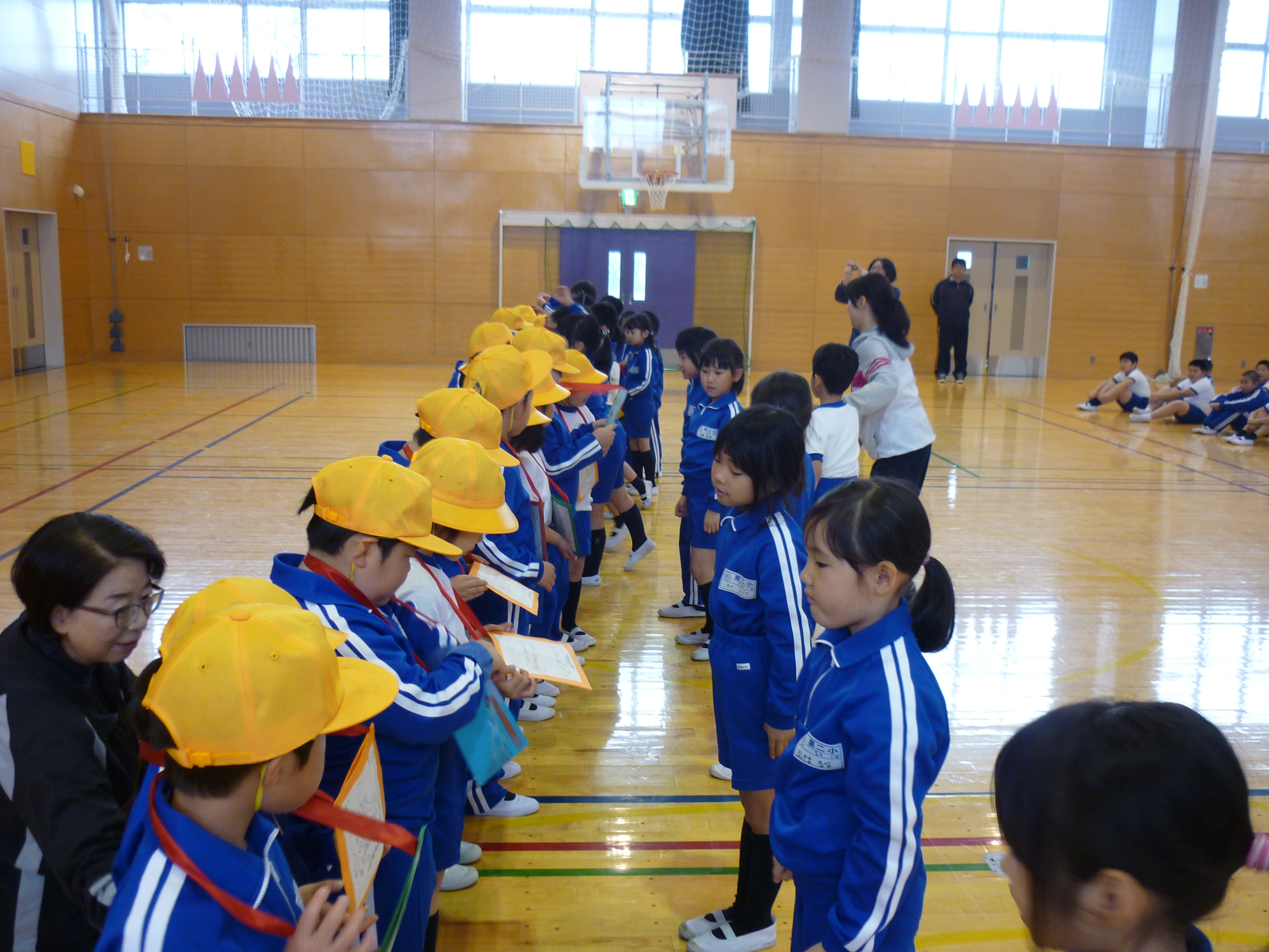 全校生で、鹿狼山に登って来ました。山頂はとっても美しい景色でした。1年生も高学年のお兄さんやお姉さんに手をつないでもらい、元気の山頂に着くことができました。その後、相馬こどもドームで昼食とゲームで楽しんできました。お弁当、とっても美味しそうに食べていました。ありがとうございました。