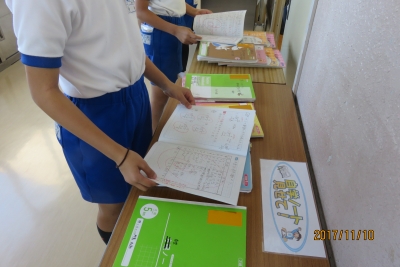 今週から始まった「個別面談」に合わせ「自主学習ノート展」を開催しています。友だちのノートを見て、自分の取り組みに生かしていってほしいと思います。
