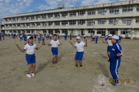 マラソン大会が終わり、今年重点をかけている「なわとび」が始まっています。校庭でみんなで練習しています。