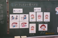 「良い姿勢で、よく噛んで(30回程度)、まんべんなく」ということ学びました。「嫌いな食べ物を食べるために、好きなものに載せて食べる」という子どもの考えには、思わず微笑んでしまいました。子どもたちなりに、工夫しようとしています。
