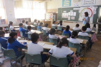 今日は、各学年で実施している「食育授業」が2年生で行われました。原町一小の栄養士さんにお世話になりました。小学校低学年では、好き嫌いが多いものです。そこで本日のめあては、「バランスよく食べよう」でした。