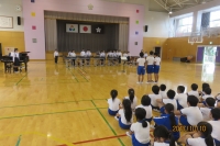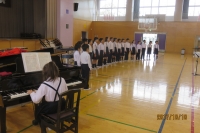 6年生代表の激励の言葉を受け、5年生が演奏を始めました。少ない人数ですが、きれいな音色、ハーモニーでした。音楽祭でもがんばってほしいと思います。