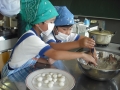 27日(水)1年生の生活科で団子つくりを体験しました。JAの学校サポートによるものです。幼稚園での経験のあるお子さんもいたようですが、初めての団子つくりに興味津々でした。粉を混ぜる、団子をまるめる、ゆでるなどの作業をしながら、美味しい団子ができあがりました。大満足の1年生でした。