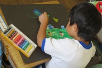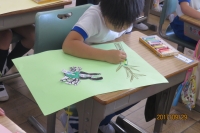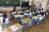今回は、一年生の「のってみたいな いってみたいな」という題材でした。入学して半年。どんな姿を見せてくれるか楽しみでしたが、とっても意欲的な姿に、参観した先生方も笑顔たっぷりでした。