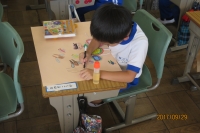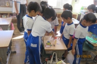 9月29日(金)、1年生の図工の授業を参観しました。原町二小は、昨年度から相馬地方小学校教育研究会の図工の研究会場校となっています。図工の専門家はおりませんが、みんなでアイディアを出し、授業の進め方や活動の仕方などを研究しているところです。