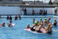 水中かけっこ、ビート板バタ足、自由形、宝拾いなどの種目にチャレンジしました。