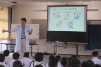 5日(火)の6校時、5、6年生対象に今年度2回目の放射線教育授業を実施しました。今回は、放射線と健康との関係について、南相馬市総合病院勤務の坪倉先生にお話をしていただきました。児童は、これまで、学校敷地の線量測定や放射線の性質除染のポイントなどを学習してきました。