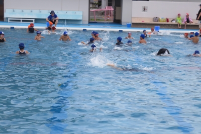 50m自由形では、5、6年生合わせて12名が泳ぎ切りました。40秒で泳いだ6年生もおりました。また、体育の時間には、100mにもチャレンジしており、数名が泳げているようでした。