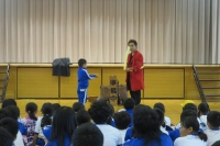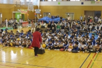 2日(土)、PTA行事の『ひばりっこ祭り』を開催しました。オープニングイベントとして、南相馬市でパフォーマンス活動をしているエンジョイJOYさんの大道芸を楽しみました。パントマイムやバルーンを使った動きに児童も保護者も笑い、気分が盛り上がりました。