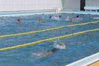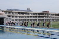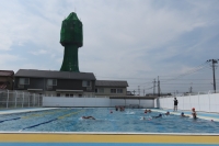 夏休みのプール指導最終日となりました。少し薄日が差す天気となり、プールに集う子どもたちの数が増えてきています。雨模様の日が多かった今年の夏休みでしたが、原町二小では7日目の利用日数となりました。