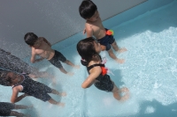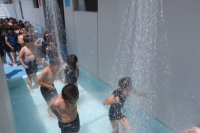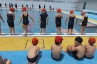 1年生が今日、小学校の大きいプールを初体験。水を怖がらない子たちがほとんどでした。でも、シャワーの時は大歓声! 一つ先輩の2年生と一緒にはいりました。