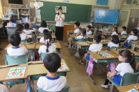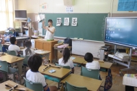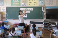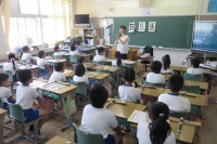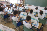 2校時には、3年生がリコーダーのレッスンです。いつも元気のよい3年生ですが、今日はやさしい音の出し方、タンギングなどを講師の先生の指示をきいて練習していました。