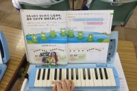 2017年6月23日 09時39分 23日(金)音楽の出前授業がありました。毎年お世話になっています。1校時に1年生が鍵盤ハーモニカのレッスンでした。やさしい楽器の取り扱い方や指遣いを教えていただきました。