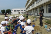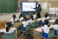 2017年5月30日 11時30分 2年生が生活科学習でミニトマトの苗を植えました。JAの佐藤さんに丁寧に教えていただきました。トマトの茎のところにある白い毛の役割が2つあること、トマトの茎を擦るとトマトの匂いがしてくること。とても楽しく勉強しながらの植え込みでした。