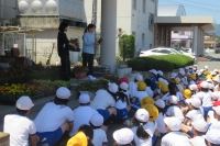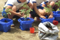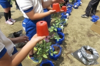 2年生が生活科学習でミニトマトの苗を植えました。JAの佐藤さんに丁寧に教えていただきました。トマトの茎のところにある白い毛の役割が2つあること、トマトの茎を擦るとトマトの匂いがしてくること。とても楽しく勉強しながらの植え込みでした。