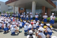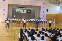 5年生代表の益山さんから励ましの言葉をいただき、全校生でエールを送りました。