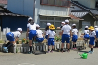 各班で1年生も6年生に声をかけてもらいながら、上手に植えることができたようです。花壇が「花いっぱい」になるのが楽しみです。
