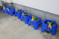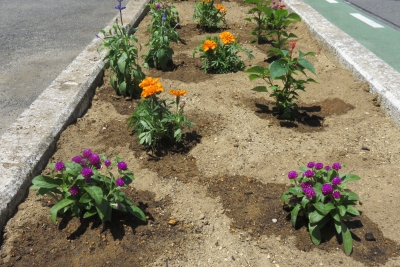 25日(木)、春の花から夏の花へ植え替え作業を予定していましたが、雨のため延期となりました。今年は、花壇へ植える花の種類を増やし、より色とりどりの花壇づくりを計画しています。どんな花壇になるのか楽しみです。