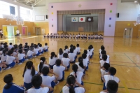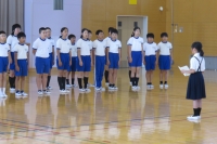 29日(月)全校集会で、来週開かれる市内陸上大会に出場する6年生の壮行会を開きました。6年生34名が出場種目ごとに紹介されました。
