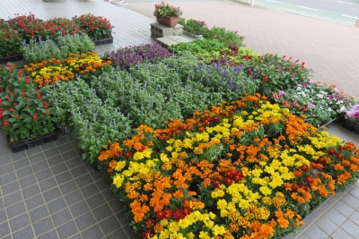 定番のサルビア、マリーゴールド、ブルーサルビアの他、千日紅やメランポジューム、ジニアリネアリス、コリウスなどを植える予定です。