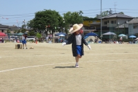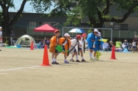 プログラム午前の種目を予定通り進んでいます。雲ひとつない青空の下、ひばりっ子たちが元気に走り回っています。