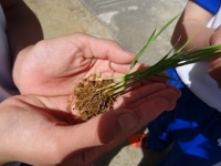 今年もバケツ稲栽培が始まりました。子どもたちにとっては、田んぼ擬きのバケツの土の感触や稲の苗を見るのも初めての子がほとんどです。大きな田んぼでの経験もさせたいところですが、町中の小学校ですので、バケツで我慢しましょう。