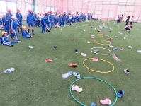 レク種目で強かったのは、学区外から登校しているチームでした。フラフープを使ったリレーや靴飛ばしで1位になっていました。ゲームで盛り上がり、無事学校へ戻りました。