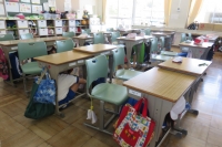 素早く机の下へ 校庭へ避難